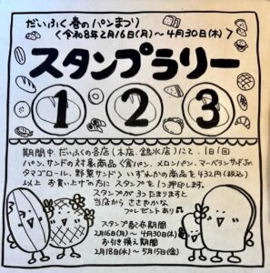 スタンプ3個貯めてだいふくの商品をもらっちゃおう!!