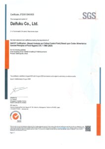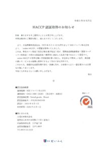 HACCP認証取得のお知らせ
